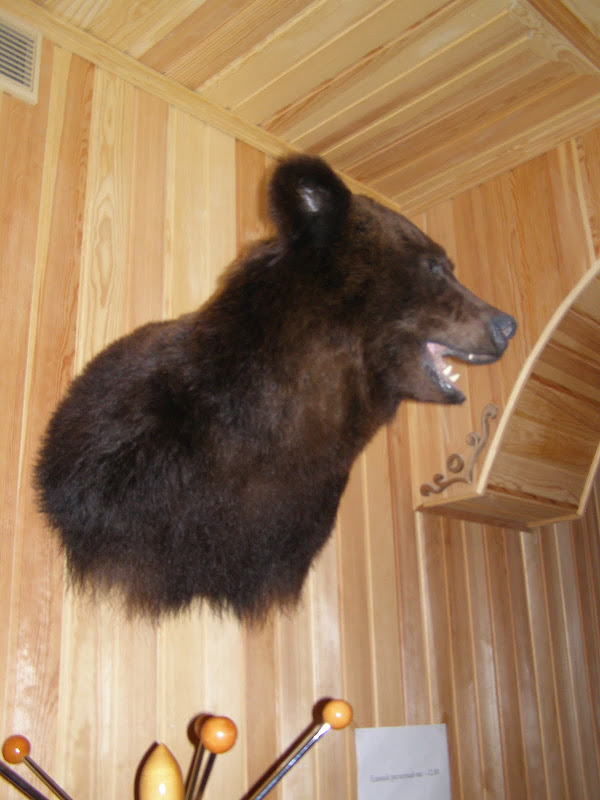 На деревянных стенах красовались охотничьи трофеи, за которыми в том числе в эти места приезжают - в окрестностях Пено можно ходить хоть на зайца, хоть на медведя.